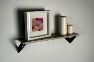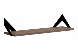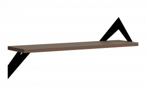 Полка крепится к стене с помощью чёрных треугольных держателей, которые обеспечивают устойчивость и долговечность. Особенность модели в том, что держатели можно расположить сверху, снизу или один сверху, другой снизу, что позволяет адаптировать полку под любые интерьерные решения и потребности.